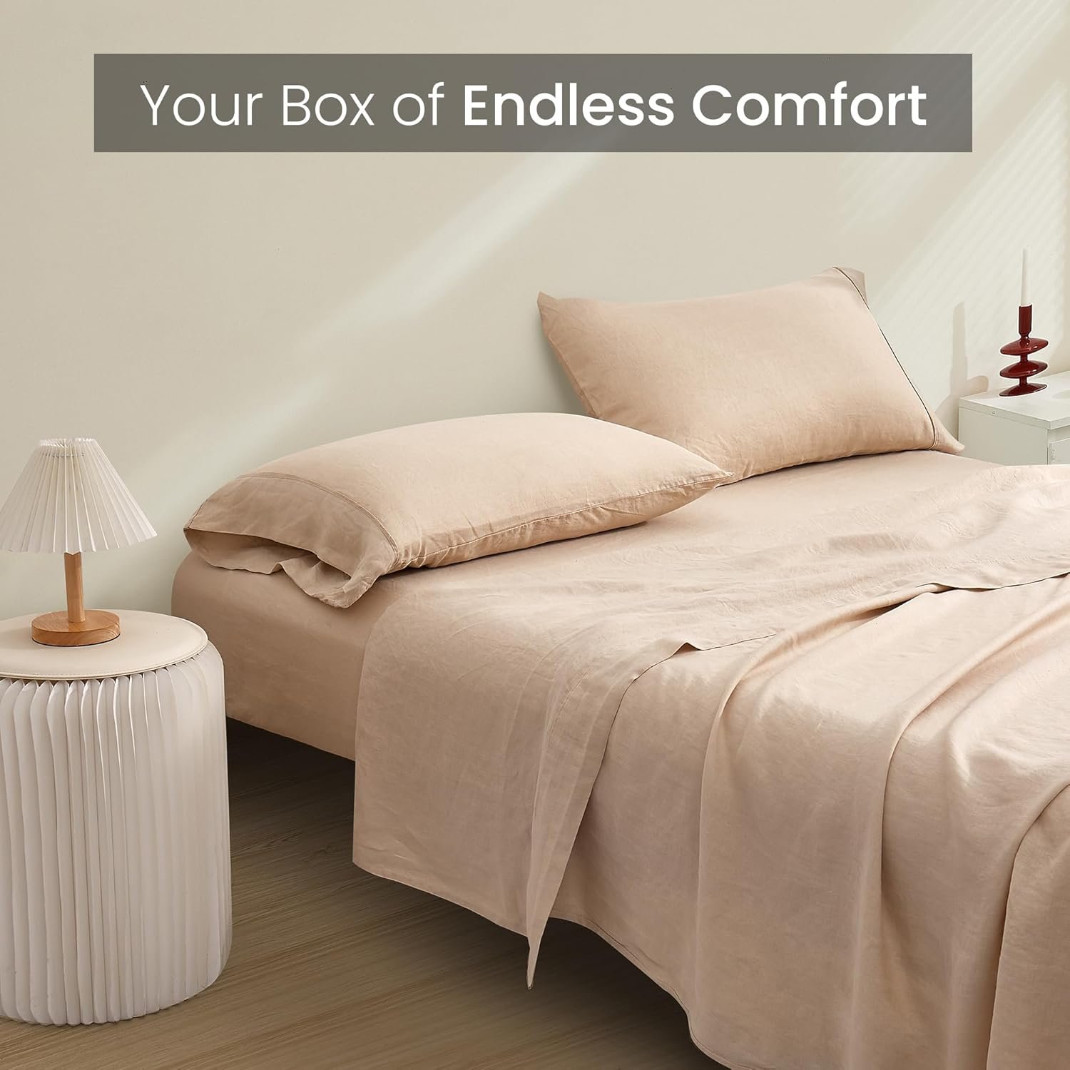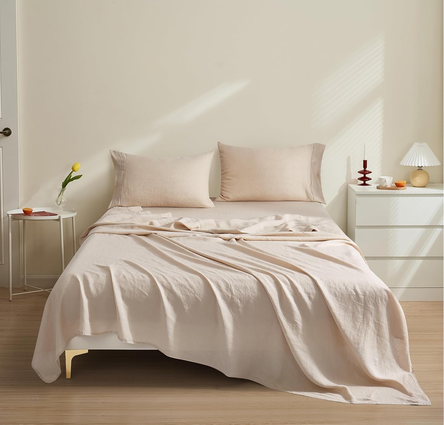 - Versatile Fit and Function Complete Set – Each linen queen bed sheets set includes a fitted sheet, a flat sheet, and two pillowcases, making it the perfect bedding ensemble.