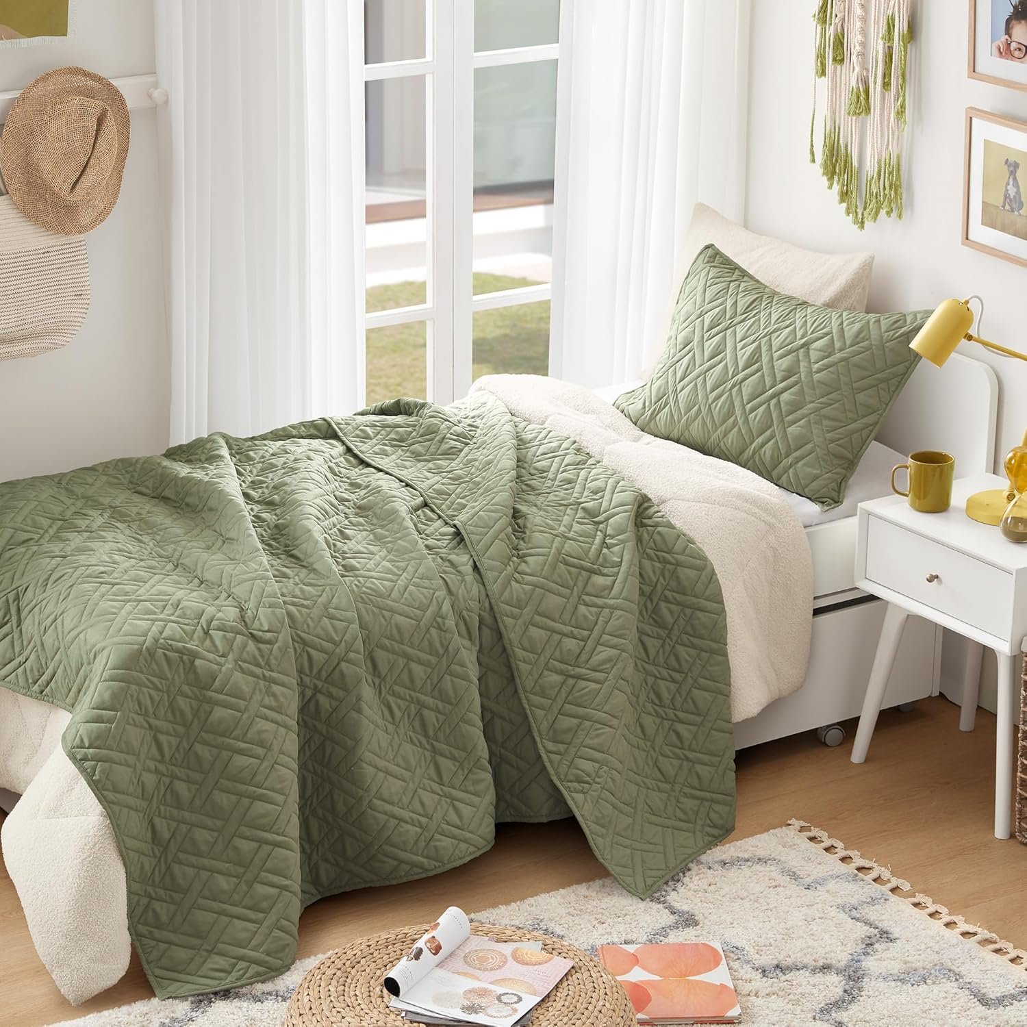- Diamond Quilting Pattern – Elevate your cozy space with this inviting, reversible diamond quilt set. Designed with an enforced binding edge for a stylish accent and enhanced durability, it offers lasting comfort