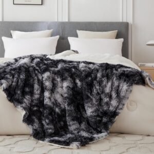 Ultra Soft Faux Fur Throw Blanket – Fuzzy Fluffy Cozy Microfiber Blankets, Warm Thick Plush Fleece Throw Blanket for Couch,Bed,Sofa,Ideal Gift for Women.(Tie Dye Black, 50″x60″)